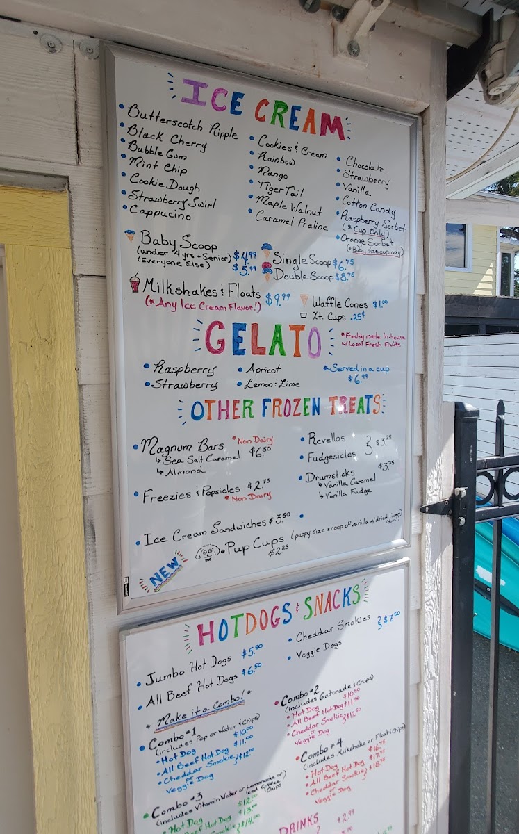 Sweet tooths will find satisfaction in their Ice Cream options, with flavors like Cookies & Cream, Black Cherry, and Bubble Gum Cookie Dough, while the Frozen Treats section includes Freezies Popsicles and fun Ice Cream Sandwiches. For a savory snack, the Jumbo Hot Dogs and All Beef Hot Dogs offer a great option.